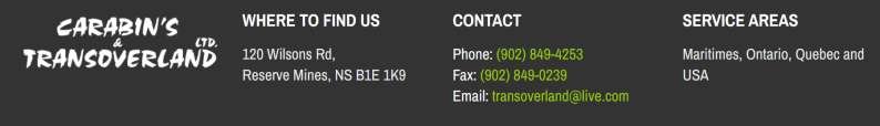 For over 30 years, locally and family-owned Carabin’s & Transoverland Ltd. has been providing motor coach and bus charters and rentals to Eastern North America, including the US. Based in Reserve Mines, our local connections mean that our friendly drivers are familiar with points of interest and experienced with the routes. Providing reliable and affordable service, we do the work while you relax.